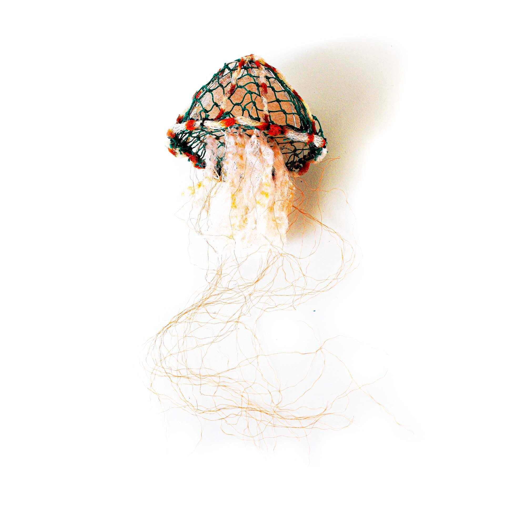 Ghost net, aluminium wire, plastic trellis, rope and twine